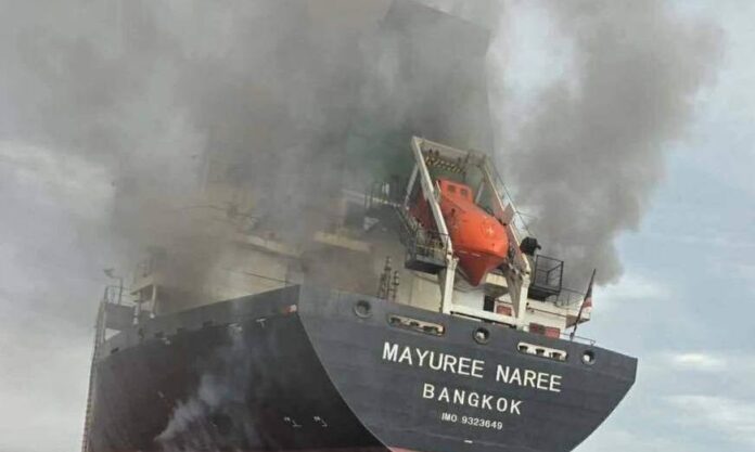 Two projectiles reportedly struck the vessel above the waterline, causing explosions near the stern and in the engine room and triggering a fire on board. All 23 crew members on the ship were Thai nationals.