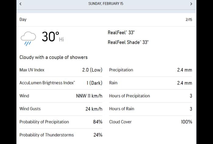 According to the weather prediction for Sunday, there is more than 85 per cent chances of rain in Colombo. The temperature in the evening is expected to be around 23 degrees Celsius. There is also around 24 per cent chances of thunderstorms in the city on day of the India vs Pakistan clash.