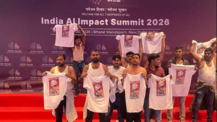 Workers of the Indian Youth Congress staged a protest at the AI Summit, alleging that Prime Minister Narendra Modi was “compromised.”