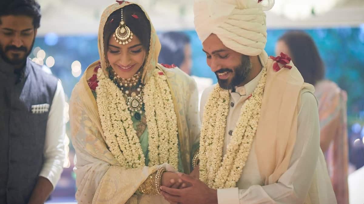 For the ceremony, Sonam chose a lime-green lehenga paired with a matching cape, striking the perfect balance between tradition and modern ease. The outfit featured delicate floral embroidery and a fluid silhouette that prioritised comfort without sacrificing elegance. Draped softly over her shoulders, the cape added a contemporary touch while allowing effortless movement.