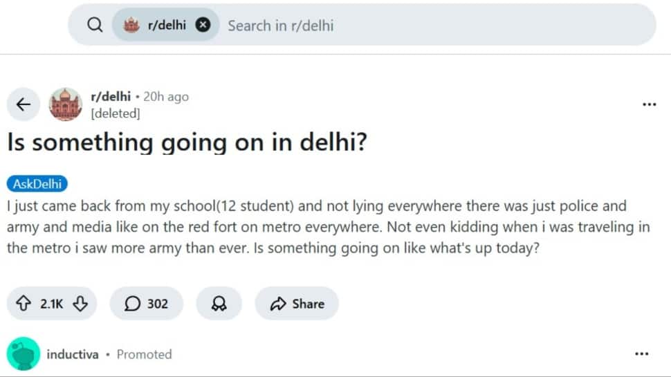 A viral Reddit post detailing an unusually heavy presence of police and military personnel in the Old Delhi area, just hours before the fatal car blast near the Red Fort, adds an intriguing layer to the ongoing terror investigation. The post, which had been shared on the popular social media platform at about 4:00 pm, questioned the increased security presence in the exact area where the explosive-laden Hyundai i20 detonated just before 7:00 pm.