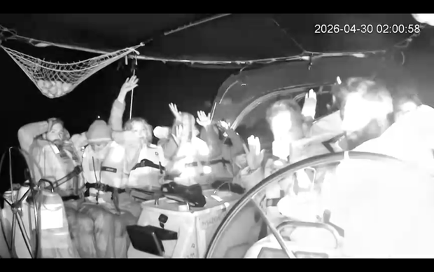 The GSF claims CCTV footage from the early hours of Thursday morning shows one of the boat seizures, and activists can be seen in life jackets with their hands on their heads. Voices off camera shout: “Nobody move,” “Put your hands in the air,” and “How many people are on the boat?”