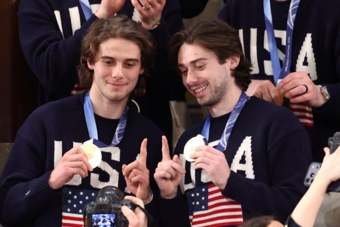 The American star, who scored Team USA’s Olympic gold-winning overtime goal against Canada on Sunday, wasn’t at morning skate after traveling back from Washington D.C. late Tuesday night following President Donald Trump’s State of the Union address. Before that, Hughes and his teammates were also partying in Miami to celebrate the first men’s hockey gold medal since the 1980 “Miracle.”