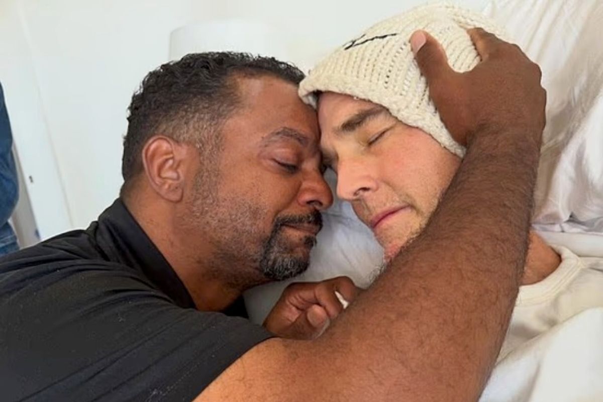 In the heartbreaking photo, Ribeiro, who was also in sitcom Silver Spoons, is seen holding Van Der Beek’s head as he lies in bed, with a woven hat pulled low.
