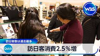 Spending by foreign visitors to Japan from January to March rose 2.5% from a year earlier to 2.3378 trillion yen, the Japan Tourism Agency said, marking the third-highest quarterly total on record, while the number of inbound visitors in March increased 3.5% to 3,618,900, setting a new record for the month.