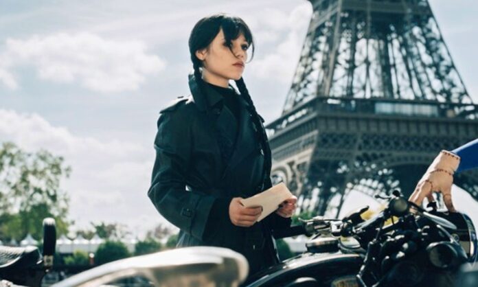 The streaming giant Netflix shared the first look image from the Season 3 of Jenna Ortega starrer ‘The Wednesday’. The series is set to expand its demography as the lead actress was spotted in Paris in the image. Taking to their Instagram handle, Netflix shared Jenna Ortega’s snap in which she was seen standing next to a motorcycle under the Eiffel Tower in Paris. Thing (Victor Dorobantu), the sentient but disembodied hand who serves as a key member of the Addams family, sits atop the motorcycle, and Wednesday holds a piece of paper in her hands and looks off into the distance with her signature deadpan glare. “From Paris, with dread,” reads the photo caption.