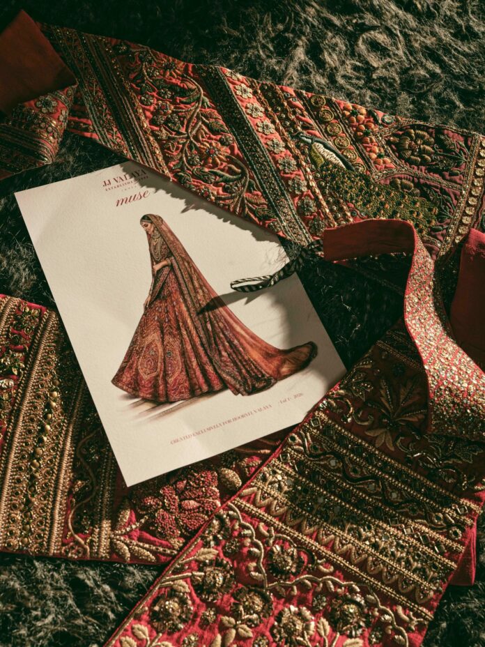 Putting together a bridal outfit with the help of a parent can be a trying experience. Opinions differ, patience runs thin and you might even catch wind of an ‘Ugh, you just don’t get it.’ For this parent-child duo, however, things fell into place rather naturally. “In terms of decor and outfits, I’ve totally left it to him,” says stylist Hoorvi Valaya. “Because I know there’s nobody better.” She’s referring to her father JJ Valaya, who has spent over three decades dressing brides at the House of Valaya. The designer would have nothing but the best for his own daughter. Luckily, the best was already in his archives.
