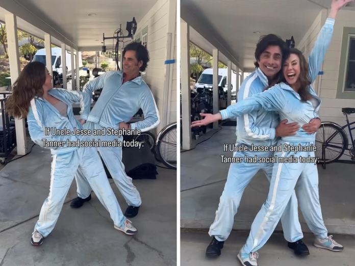 Written across the post in big white letter is “If Uncle Jesse and Stephanie Tanner had social media today:” … and Stamos captioned it, “I’d follow them.”