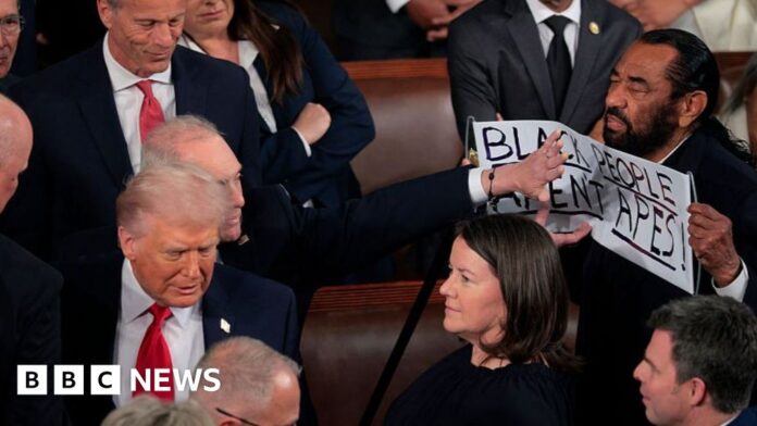 When Trump entered the room, he shook the hands of various lawmakers and then reached the justices in the front row. As is customary, Trump shook the hand of Roberts as he moved to the podium, but the pair shared a stoic look – a possible sign of the lingering tension since the president lambasted the six justices, Roberts included, who ruled against the levies.