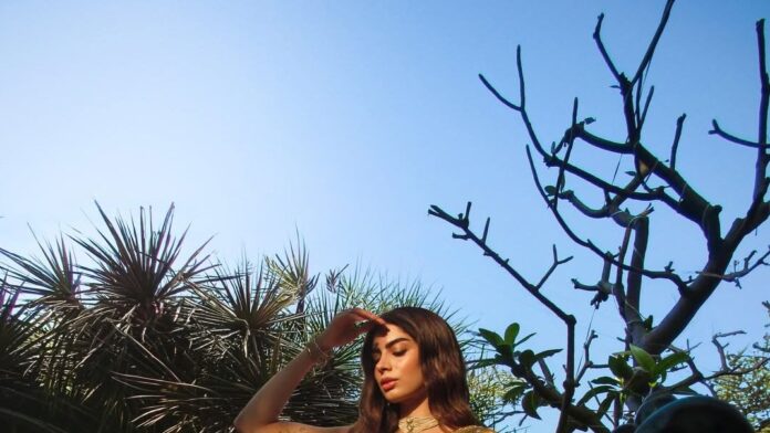 Madhav Trehan keeps the hair in long waves, and Tanvi Chemburkar fills out her brows, lengthens the lashes and drapes the blush for a sun-kissed finish. Highlighter at the high points of her face add to the summery look.