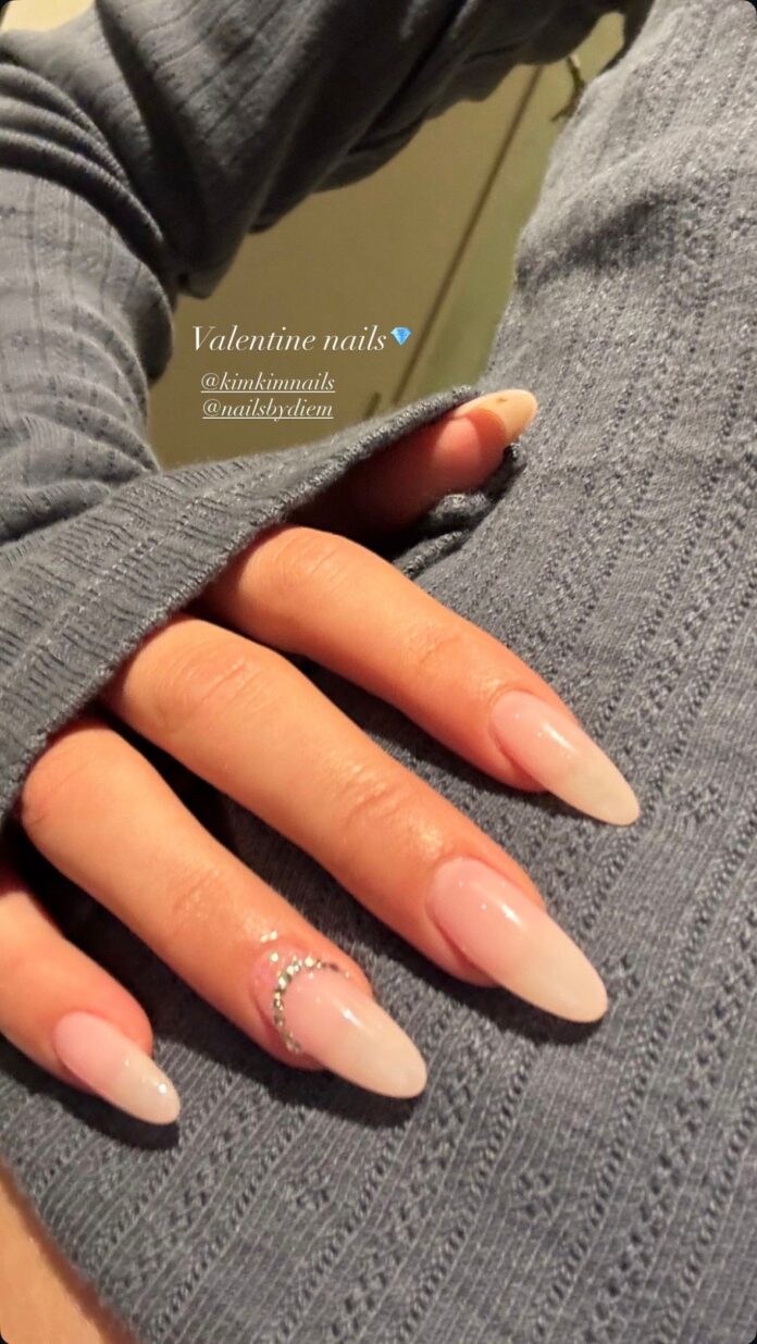 The reality star and entrepreneur posted a cute close-up of her latest manicure to Instagram, and it’s a major switch from the shorter nails she’s been sporting for the last few months. The long, oval shape is host to the prettiest milky nude polish—a look that’s definitely going strong right now.