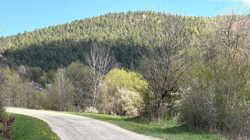 Droga prowadząca w stronę lasu w okolicach Płonnej.