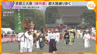 The Jidai Festival, one of Kyoto’s three grand festivals, was held as a parade of people dressed in costumes representing different historical eras made its way through the streets of the ancient capital.