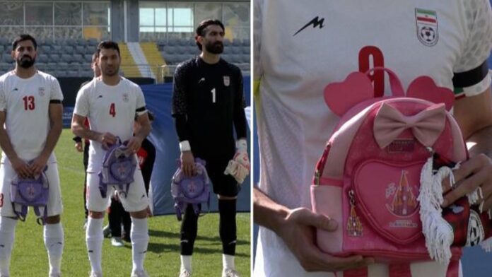 La nazionale iraniana in campo con gli zainetti scolastici per ricordare la strage di Minab