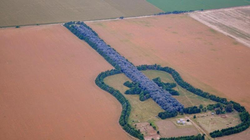 Nella pampa argentina, a sud di Córdoba, migliaia di alberi disegnano la sagoma di una chitarra. Il parco si chiama La Estancia La Guitarra e l’ha realizzato, con quarant’anni del lavoro di tutta la famiglia, l’agricoltore Pedro Martín Ureta in memoria della moglie Graciela Yraizoz, morta a 25 anni per un aneurisma.