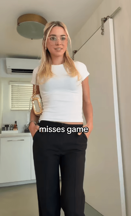 It then jumps to a Dunne in different attire and the words “misses game” are written over the video.