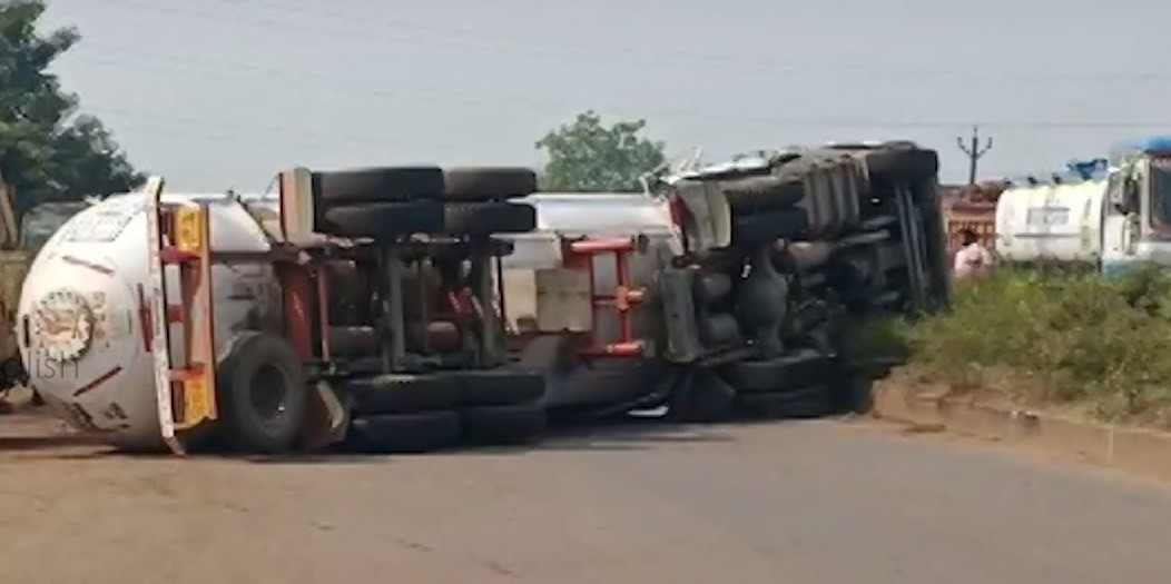 The tanker, belonging to Hindustan Petroleum Corporation Limited, lost control and overturned in the middle of the road on Monday morning. Gas began leaking from the vehicle following the accident, raising safety concerns for motorists travelling on the busy stretch.