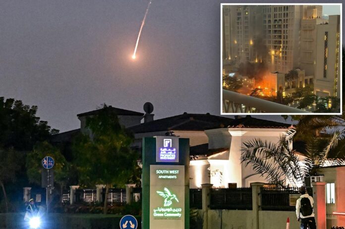 A lush Dubai tourist hot spot was set ablaze Saturday in Iran fired missiles on the middle east nation in retaliation for US/Israeli airstrikes.