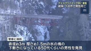 A man in his 50s died after falling while ice climbing in Gero, Gifu Prefecture, on March 2nd, after a report was made shortly after 9 a.m. from a person at the scene in Osakacho stating that he had fallen along with a sheet of ice and become trapped beneath the collapsed mass.
