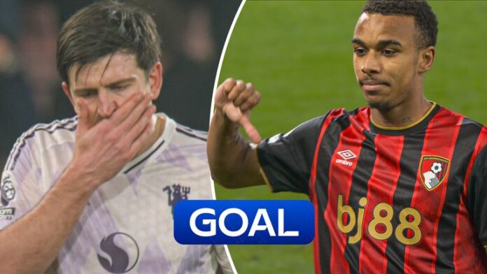Maguire desperately grabbed at Evanilson with 12 minutes of normal time remaining to give away the spot-kick for Bournemouth’s second equaliser of the night, expertly converted by the Premier League’s top-scoring teenager Junior Kroupi.