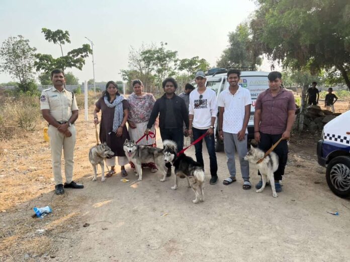 Hyderabad: The city witnessed a disturbing case of animal cruelty after dozens of Siberian Husky dogs were found abandoned on the Shankarpally–Patancheru road on Tuesday, April 28.