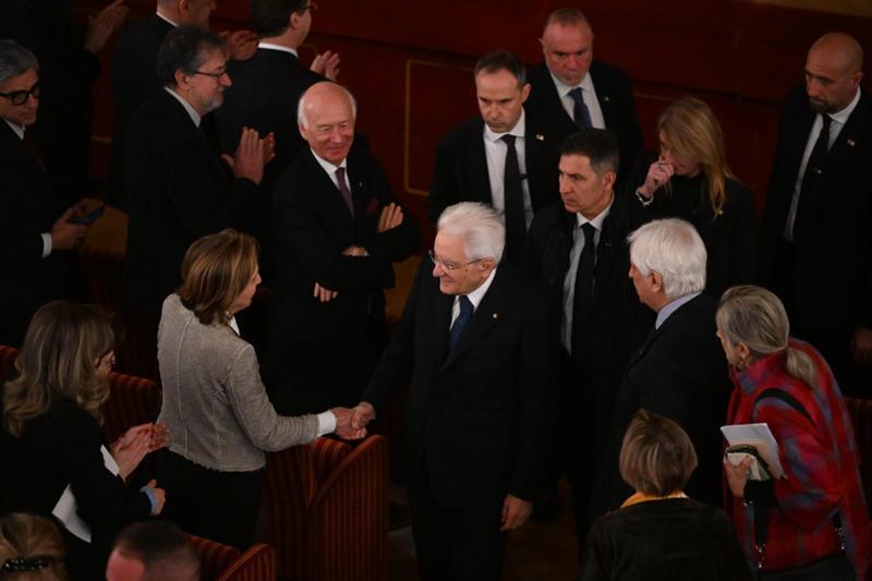 Il presidente della Repubblica, Sergio Mattarella, è entrato ora in teatro. La cerimonia può riprendere