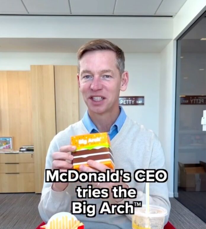 The clip posted to social media last month shows McDonald’s CEO and Chairman Chris Kempczinski reluctantly trying the new “Big Arch” burger, which will be released in the US on Tuesday.