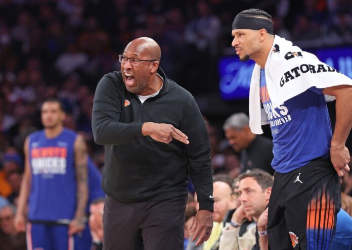 Brown prefers to sit both Jalen Brunson and Karl-Anthony Towns for the starts of the second and fourth quarters rather than stagger them and have one on the court. The lineup he uses instead — with Miles McBride, Landry Shamet, Jordan Clarkson and Mitchell Robinson on the floor — struggled in the Knicks’ 107-106 Game 2 loss to the Hawks on Monday night at Madison Square Garden.