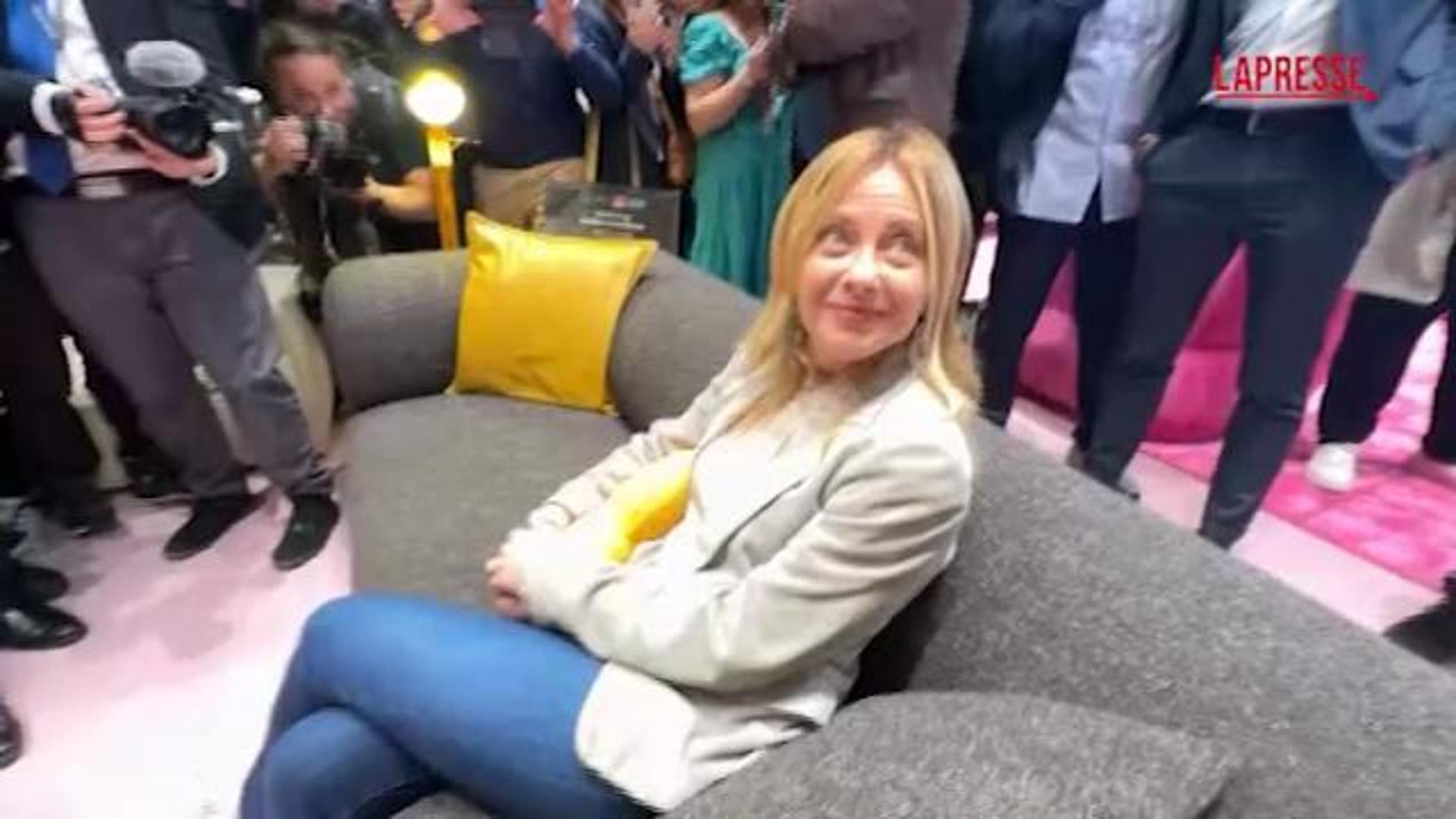 Giorgia Meloni al taglio del nastro per la 64a edizione del Salone internazionale del mobile di Milano, a Rho Fiera. La presidente del Consiglio ha posato per i fotografi e si è lasciata andare a qualche battuta mentre si sedeva su un divano all’interno del Salone: “Se è più comodo di quello della Casa Bianca? E’ più comodo anche di quello di Palazzo Chigi”.