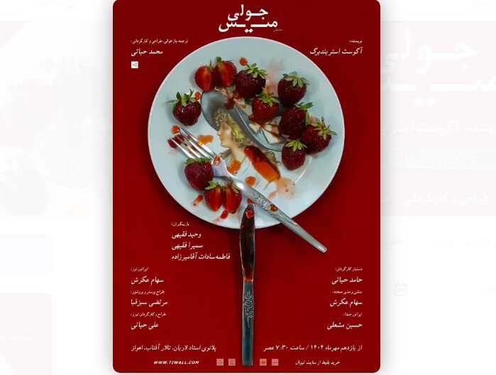 TEHRAN- A production of Swedish playwright August Strindberg’s play “Miss Julie” is currently being performed at Aftab Hall in Ahvaz, located in the southwestern Khuzestan province.