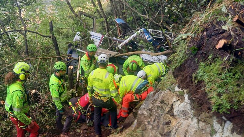 I soccorritori davanti ai resti della cabina precipitata