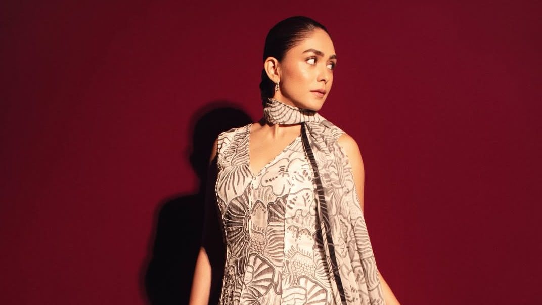 For the press run of her upcoming action-thriller Dacoit, Mrunal Thakur has been moving through a string of polished promotional looks. But for the film’s screening, she chose something with more personality. In a monochrome printed co-ord set from Mishru, Thakur leaned into a noughties-inflected graphic mood that felt playful and well-suited to the occasion.