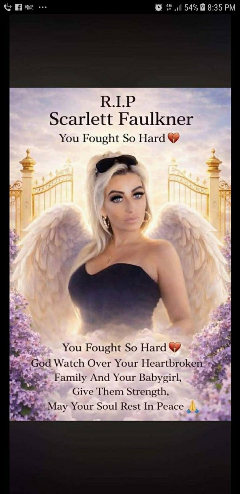Scarlett Faulkner była szanowaną członkinią społeczności Travellerów (grupa etniczna koczujących podróżników wywodząca się z Irlandii — red.) z hrabstwa Limerick. W czasie pogrzebu jej siostra, Victoria Faulkner, mówiła o niej z głębokim wzruszeniem: “Byłaś oczkiem w głowie taty i całym światem mamy. Będziemy cię kochać na zawsze, nasza śpiąca królewno”.