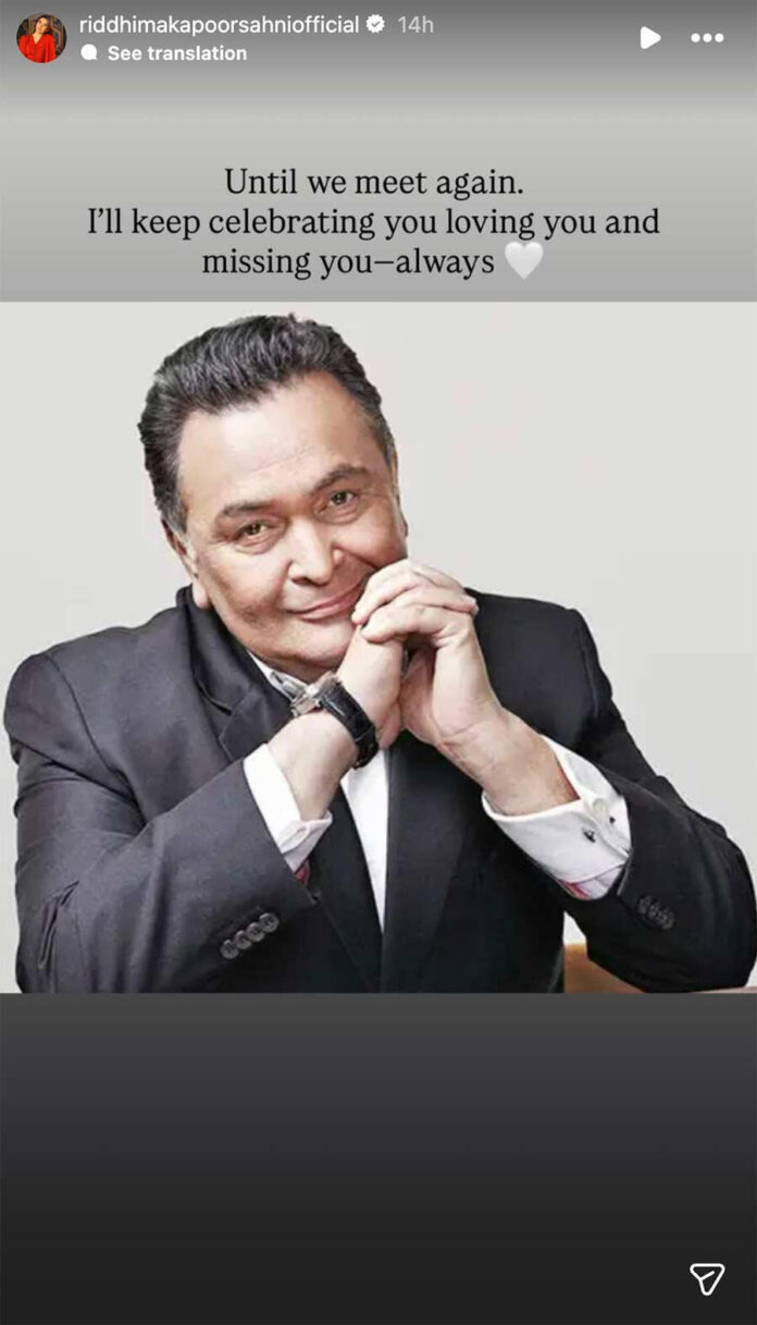 On Thursday, veteran actor Neetu Kapoor took to her social media and shared a heartfelt emotional tribute to her late husband, Rishi Kapoor, on the occasion of his death anniversary, marking six years since his passing. The Instagram story was captioned as, “Always in our hearts”. Similarly, Riddhima Kapoor Sahni, the late actor’s daughter, also shared a heartfelt note accompanied by a portrait of her father, Rishi Kapoor, and wrote, “Until we meet again. I’ll keep celebrating you, loving you and missing you, always.”