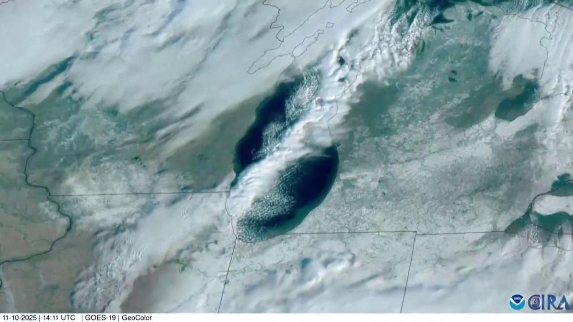 Le immagini satellitari mostrano l’evoluzione, nel corso della giornata, di una bufera di neve sul Lago Michigan, evidenziandone l’intensità mentre colpiva la regione. La tempesta ha prodotto abbondanti nevicate, in particolare grazie all’effetto “neve-lago” che si verifica quando l’aria fredda attraversa l’acqua del lago, assorbendo umidità e scaricandola come neve al suo passaggio. Il National Weather Service ha emesso avvisi di bufera di neve per le aree circostanti il lago, incluse parti del Michigan, Minnesota, Wisconsin e del Dakota del Sud.
