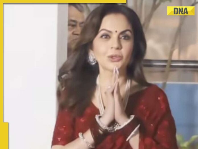 Nita Ambani impressed everyone at the Dhirubhai Ambani International School annual day by wearing an elegant red saree paired with pearl and diamond jewellery. Her graceful look perfectly reflected a blend of traditional Indian style and modern elegance.