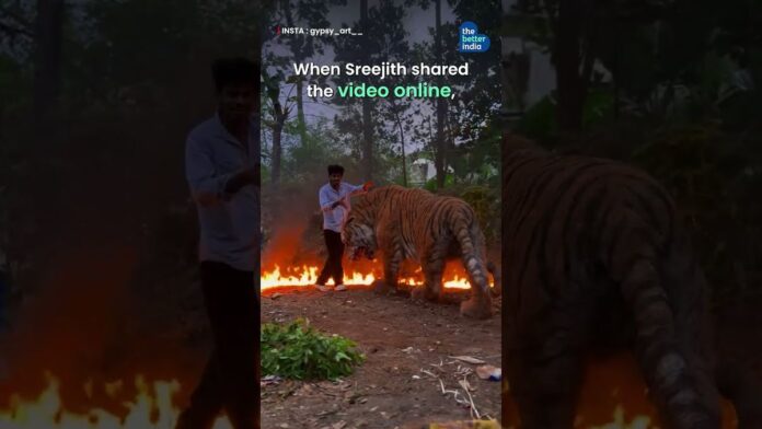 From a small workshop in Kerala, artist Sreejith S.S. recreated the majestic tiger using dried banana leaves, straws, coconut husk, and papier-mâché.