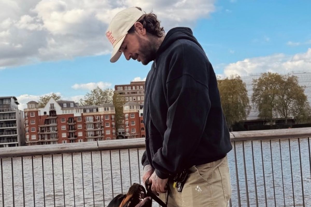 Former Towie star Pete later shared a snap – taken along a different stretch of the River Thames – of himself with his dog Rodney alongside the word ‘Saturday’ and a black heart emoji.