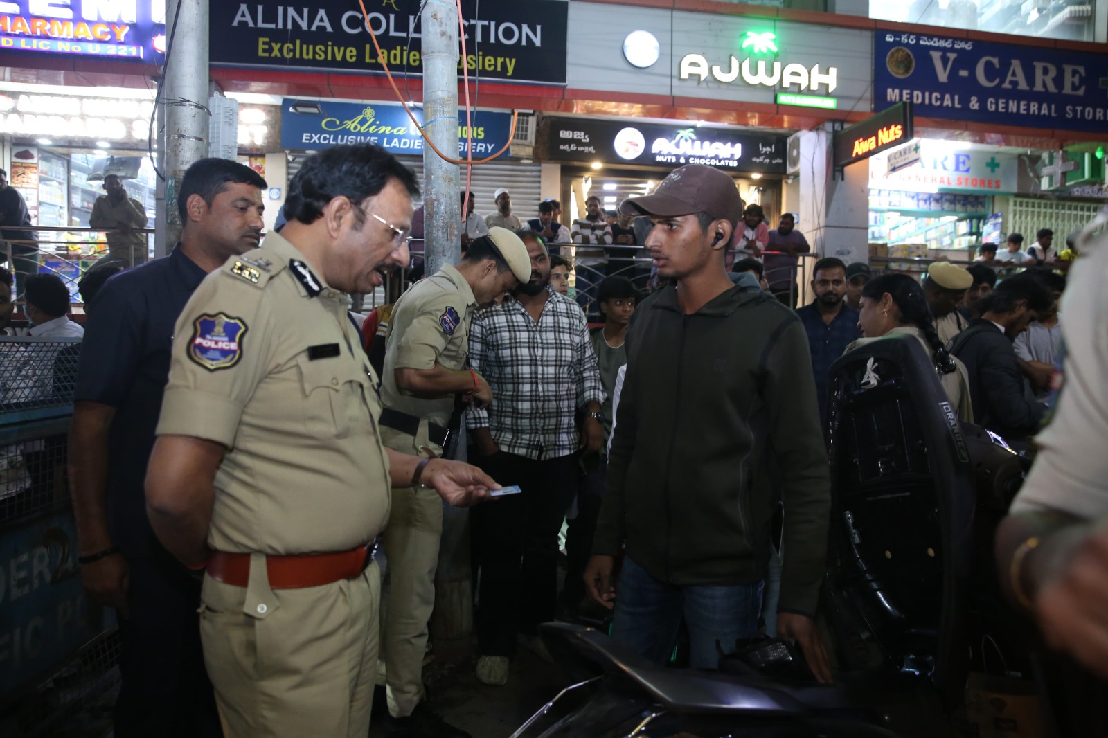 City police commissioner V.C. Sajjanar was present on the ground, overseeing sensitive areas including Tolichowki and Gulzar Houz in the Old City, and later monitoring progress from the Telangana Integrated Command and Control Centre in Banjara Hills via CCTV. The coordinated effort involved multiple units — law and order police, task force, traffic, and Armed Reserve — conducting inspections on approximately 15,000 vehicles and seizing 1,600 for documentation issues.