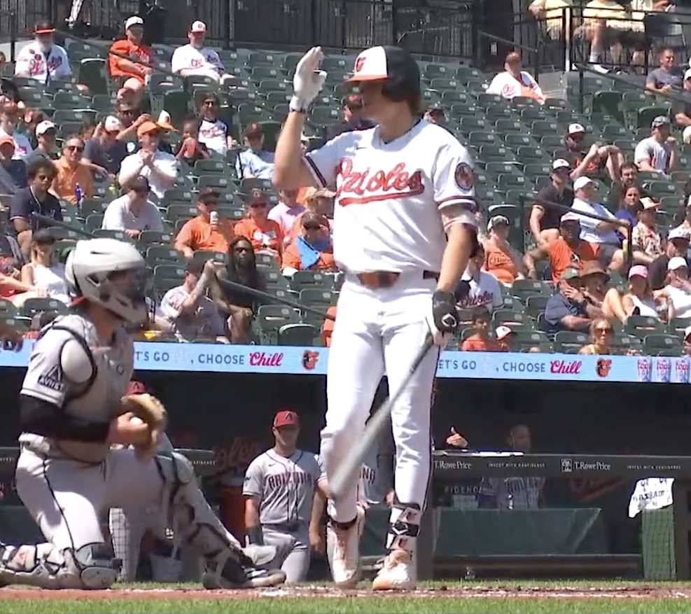 With two outs in the bottom of the second inning of their 8-5 loss to the Diamondbacks, Baltimore third baseman Coby Mayo took a 3-0 pitch from Arizona starter Eduardo Rodriguez near the outside corner that home plate umpire John Tumpane called a strike.