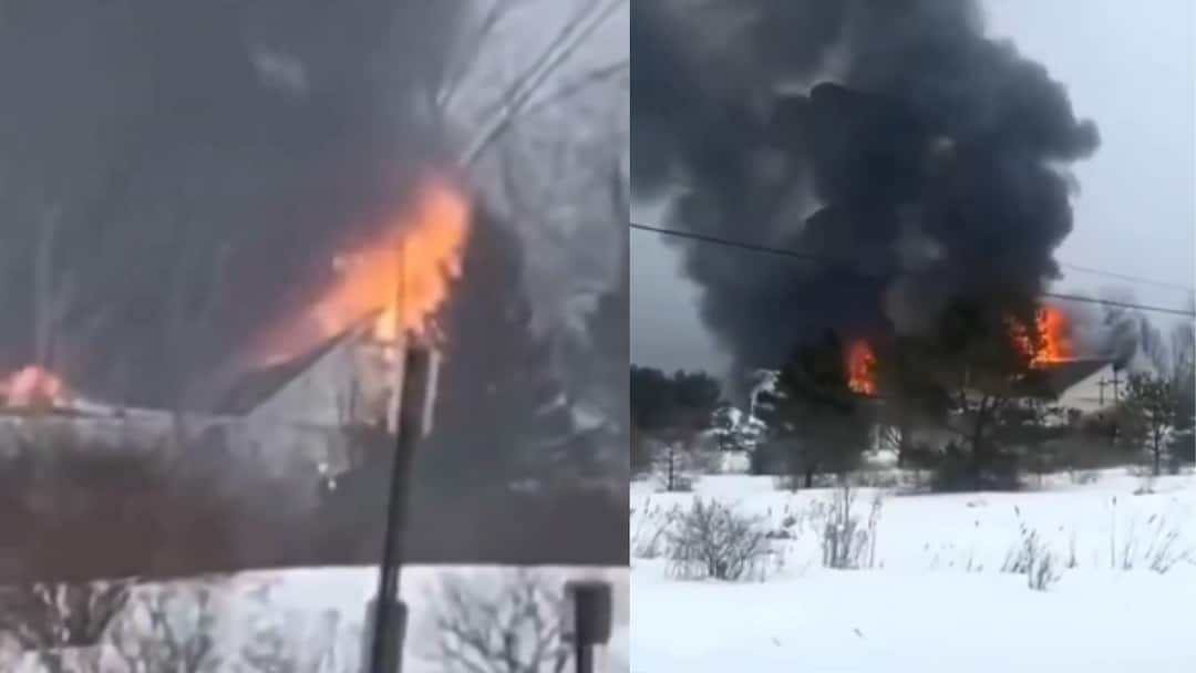 Images and videos shared online showed thick plumes of black smoke rising into the sky as flames consumed parts of the building. Debris was scattered across the property, underscoring the intensity of the blast.