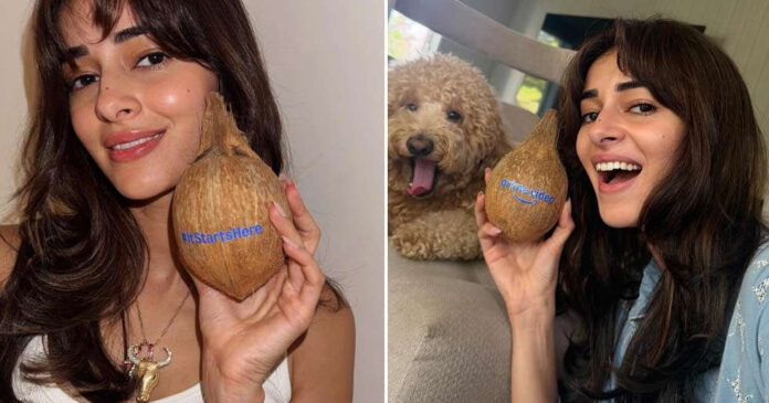 In the photos, Ananya is seen posing with her pet dog while holding a coconut with ‘Amazon Prime’ written on it, hinting at a new beginning.