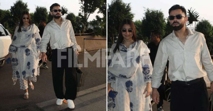 Anushka Sharma and Virat Kohli were clicked early in the morning as they arrived at the Mumbai airport. The actress wore an ethnic outfit consisting of a light pastel kurta set adorned with floral prints and a matching dupatta. She kept her makeup minimal. Virat, on the other hand, looked handsome in a beige shirt paired with black trousers. He completed his look with a pair of black sunglasses.