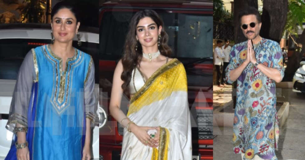 Kareena Kapoor kept it elegant in a blue kurta paired with white and golden trousers, while Bhumi looked radiant in a white ensemble. Arjun Kapoor made a striking appearance in a red kurta, though he chose to skip posing for the cameras as he walked in. Sonam’s cousin Khushi Kapoor looked lovely in a white saree with a yellow border.