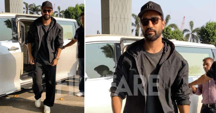 Vicky Kaushal was clicked at the airport today in a sleek, all-black look. He wore a black T-shirt paired with a matching jacket and trousers, keeping the outfit stylish and coordinated. He rounded off the look with a black cap and sunglasses, adding to the understated style. Vicky greeted the paparazzi on arrival and happily posed for photos on request. He flaunted his warm smile before entering the airport.