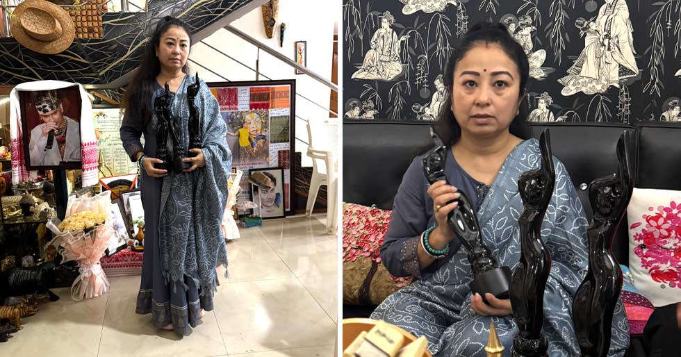 Garima also posed with three Filmfare trophies, as Zubeen Garg was additionally recognised with the Best Playback Singer award for Agoli Anubhabe and a Special Recognition award for Roi Roi Binale.
