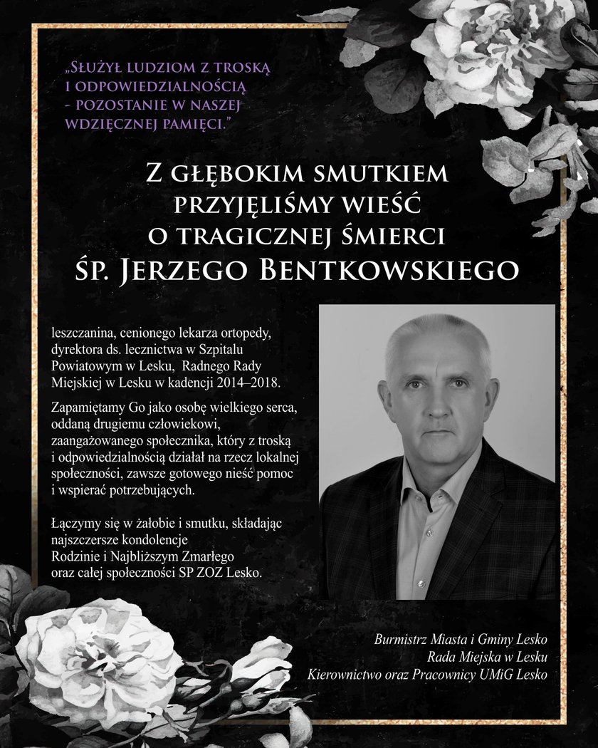 “Z wielkim żalem i poruszeniem przyjęliśmy wiadomość o śmierci Śp. Jerzego Bentkowskiego. Odszedł człowiek, który przez lata z oddaniem służył mieszkańcom Leska — jako lekarz, samorządowiec i społecznik. Jego praca i zaangażowanie na rzecz lokalnej wspólnoty pozostaną na zawsze w naszej pamięci” — napisano na oficjalnym profilu władz Leska na Facebooku.