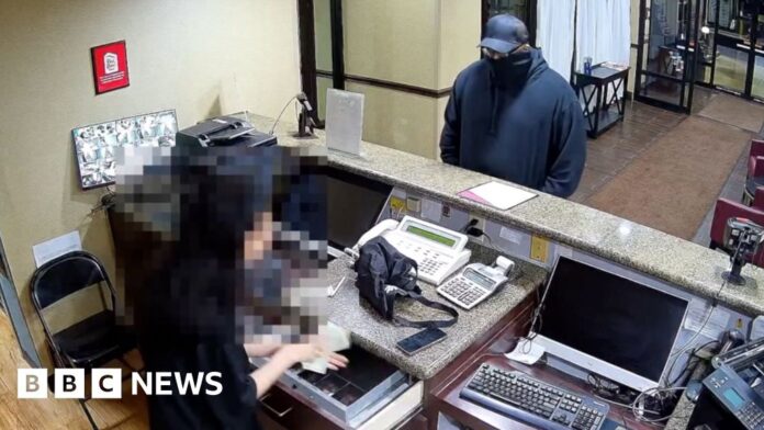 The Franklin County Sheriff’s Office has released surveillance footage of an unidentified man robbing a Red Roof Inn hotel in Ohio on 14 April. The video shows the suspect approach the front desk and demand money from the clerk, who complied. Officials say the suspect implied he had a weapon.