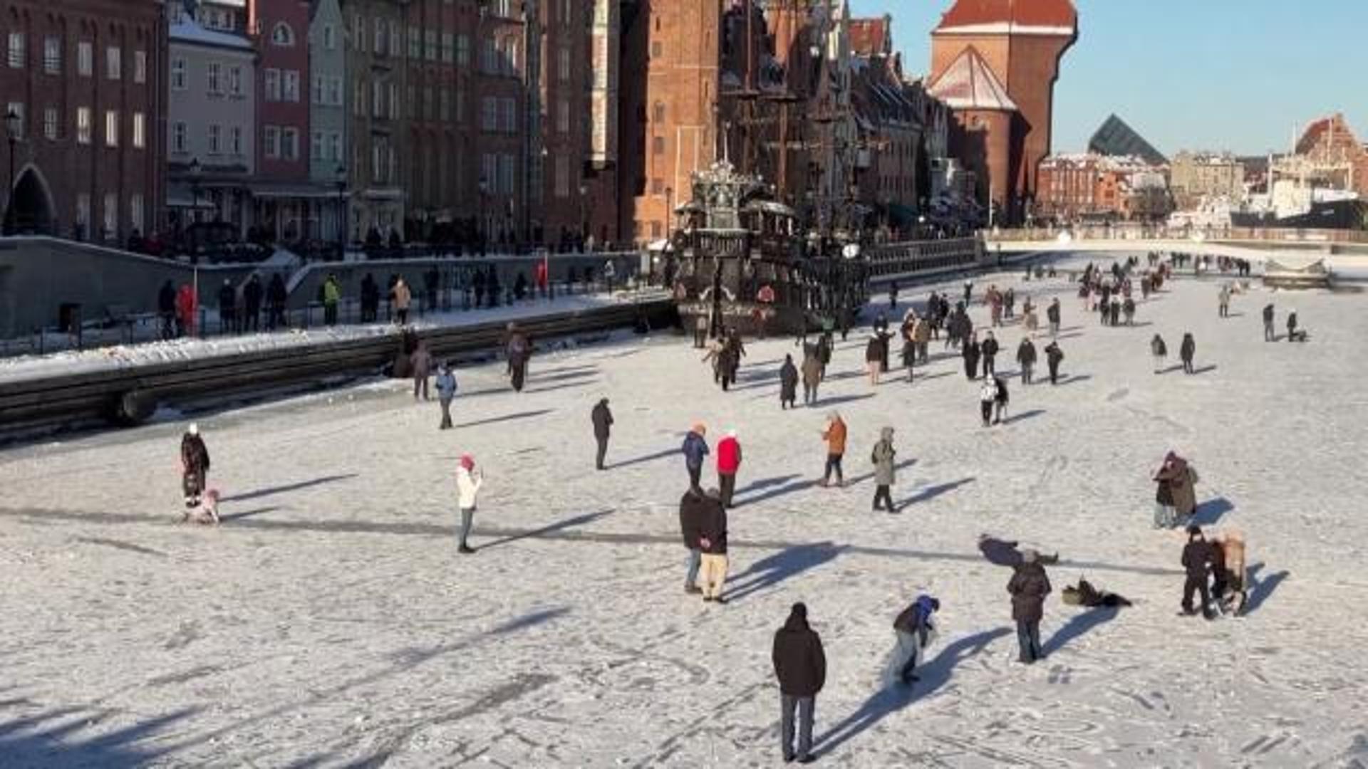 Il gelo più intenso degli ultimi anni colpisce la Polonia e trasforma i fiumi in scenari invernali fuori scala: a Danzica, centinaia di persone camminano, pattinano e perfino vanno in bicicletta sul fiume Motława ghiacciato, nonostante il divieto delle autorità per motivi di sicurezza. Le temperature scendono fino a -22 gradi e in alcune aree sono previste punte di -30, mentre le immagini mostrano bambini che giocano sul ghiaccio, pescatori che praticano fori e folle che sfidano il rischio. A Varsavia, i droni riprendono la Vistola parzialmente congelata, segno di un’ondata di freddo che dura da settimane e che sta spingendo al limite infrastrutture e comportamenti, tra meraviglia visiva e allerta per la sicurezza.