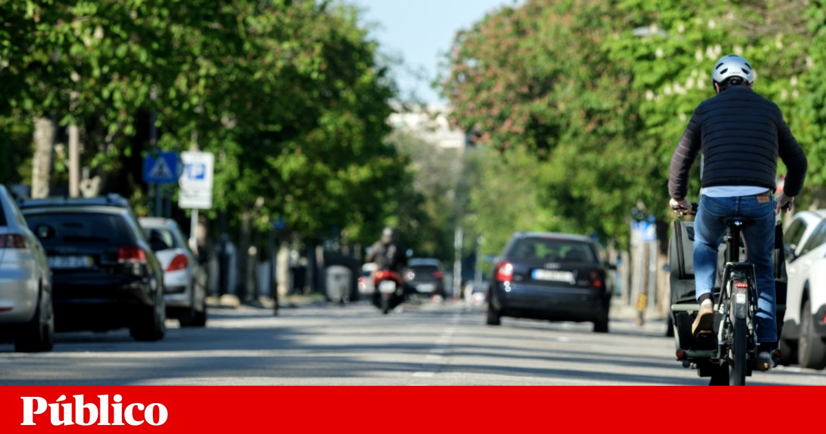 Um escorrega, um trampolim, uma ciclovia, um curso de água no lugar do alcatrão e árvores. Alguns dos elementos repetem-se entre os vários desenhos que estão pendurados num fio, com molas de madeira, entre árvores do parque infantil da Associação de Moradores do Campo Alegre, no Porto.